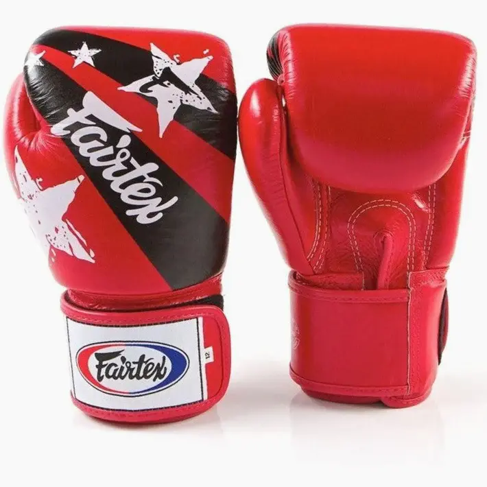 Boxerské rukavice Fairtex Nation Prints určite nezostanú nepovšimnuté ako pre ich technické vlastnosti, tak aj pre ich podmanivú grafiku. Vyrobené z materiálov najvyššej kvality, sú to 100% koža, synonymum odolnosti a trvanlivosti.