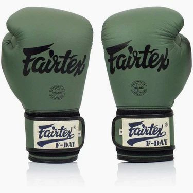 Fairtex BGV11 F-Day Gloves sú limitovanou edíciou modelu historickej thajskej značky. Medzi ich špecifiká patrí vojenská zelená farba s matným povrchom, konzistentné a robustné polstrovanie, ako aj obal a doštičku Fairtex.