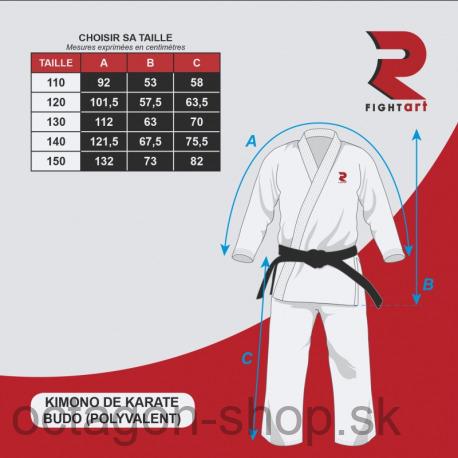 Kimono karate „Budo“ Fightart bolo špeciálne navrhnuté pre deti, ktoré začínajú cvičiť.Tkanina kabáta a nohavíc bola špeciálne vybraná tak, aby zabezpečila pohodlie, dokonalý strih a neuveriteľnú ľahkosť pohybu pre najmenších. Elastický pás nohavíc, šnúrky a rôzne výstužné body z neho robia ideálne kimono pre začiatočníkov. Kimono má atraktívne tkané etikety.Zloženie materiálu: 65% bavlna, 35% polyester. Gramáž materiálu je 190 g.m2 Kimono sa dodáva s opaskom.