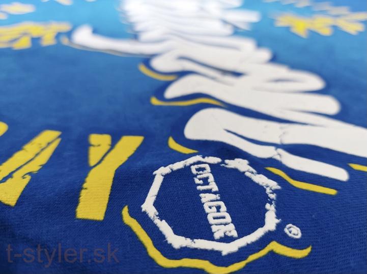 Pánske tričko s potlačou od značky Octagon. Octagon tričko Brazilian Jiu Jitsu modré je vyrobené z bavlneného materiálu, vďaka čomu je vzdušné a elastické. Jeho jednoduchý dizajn vynikne v spojení s teplákmi, kraťasmi alebo mikinou. Tričko s krátkym rukávom Octagon sa hodí na tréning alebo na každodenné nosenie.
