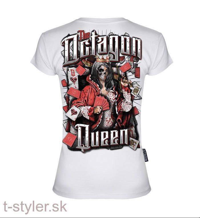 Octagon tričko dámske Queen biele. Tričko s potlačou okamžite upúta svojím zaujímavým dizajnom, ktorý sa nachádza na jeho oboch stranách. Môžete si ho obliecť kamkoľvek - na párty, do kina aj na tréning. Toto bavlené tričko s krátkym rukávom výborne vynikne v kombinácii s teplákmi, rifľami alebo kraťasmi.